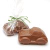 Mix čokoládových autíček uložených v čokoládovém autě, baleno v celofánu a ovázáno stuhou.