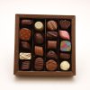 Mix čokoládových bonbonů z hořké, mléčné a bílé čokolády s různými duhy náplní. Ovocné, lískooříškové, likérové a marcipánové bonbony. Ručně zdobené pralinky. Vše následně uloženo do hnědých pergamenových košíčků a luxusní papírové krabičky. Dvě patra pralinek. Ovázané luxusní dárkovou mašlí.